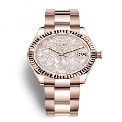 密镶262颗钻石表盘,镶有粉红色珍珠母蝴蝶图案