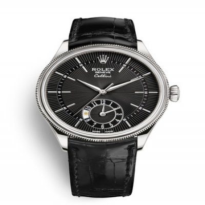 中央时、分及秒针;6点钟位置显示第二时区时间,设昼夜指示